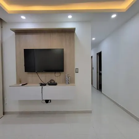 Apartamento Apartamento Cerca Al Mar, En Cartagena Col cuenta con una terraza equipada con climatizador y televisión y TV de pantalla plana con canales vía satélite. El establecimiento ofrece mobiliario cómodo, incluyendo un sofá. Hay 2 baños. También encontrarás una secadora y toallas de baño.